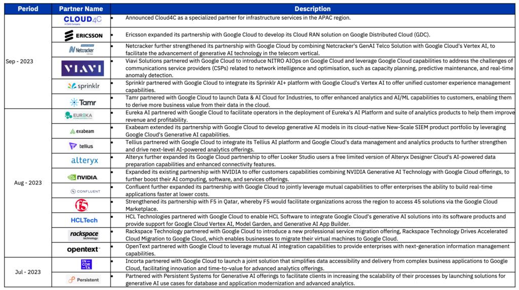 - Microsoft, Google and Oracle have made initial strong inroads to grab customerâs attention to be their preferred partners in their digital transformation roadmap complimented with potential usage of Generative AI.